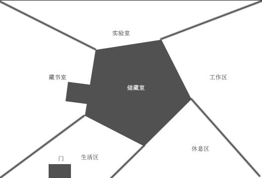 全息影像上出现了一间极为凌乱的高科技的办公室,正中央是直径约两米左右的五角形储藏室,储藏室的五个对角将整间办公室分割成工作区,休闲区,生活区,实验区和藏书室,每个区之间都用蓝色的玻璃墙隔断。